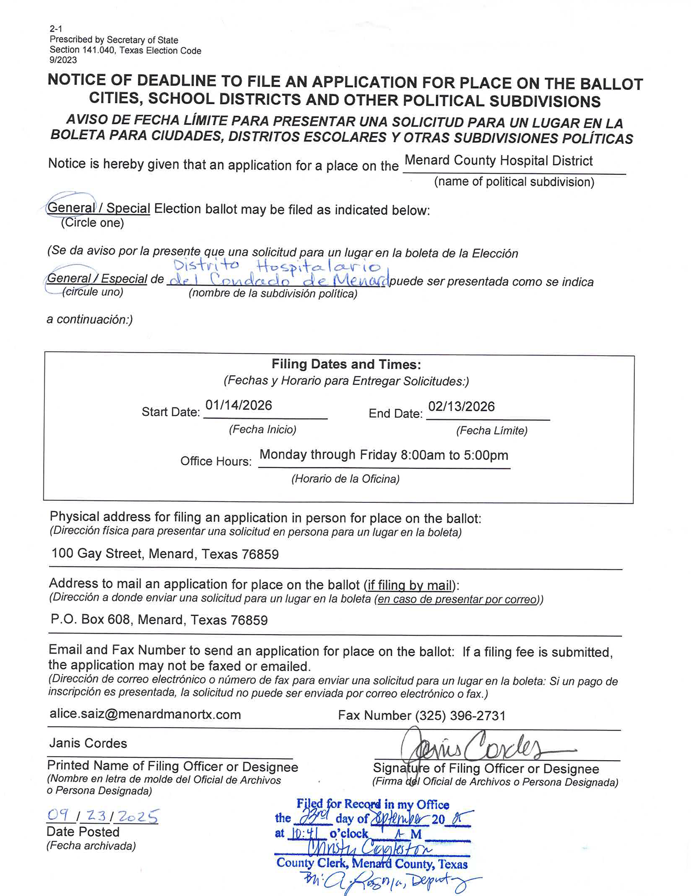 An application for an office filled by voters of a single county must be filed with the county party chair or the secretary of the county executive committee, if any. (Section 172.022, Texas Election Code) This candidate application must be accompanied by either a filing fee or a completed Petition in Lieu of a Filing Fee. Please see Sections 172.021, 172.025, Texas Election Code, for the required number of signatures on a submitted Petition in Lieu of a Filing Fee. The filing deadline is 6:00 p.m. on the second Monday in December of the odd-numbered year preceding the General Primary Election and the application may not be filed earlier than 30 days before the filing deadline. For additional information, please see the Candidate’s Guide on the Secretary of State’s website, including the page on Frequently Asked Questions on Party Affiliation and Candidacy.
